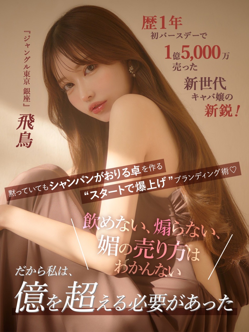 キャリア1年で迎えた初バースデーでは売上1億5,000万超え! モンスター級の強さを誇る『ジャングル東京 銀座』の飛鳥さんがメゾンドボーテ初登場♡ 看護師からキャバ嬢に転向するや、飛ぶ鳥を落とす勢いで有名嬢の階段を駆け上がった飛鳥さん。そのバックグラウンドから、売り方、接客、信条まで、はじめましての自己紹介コラムをお届け!
