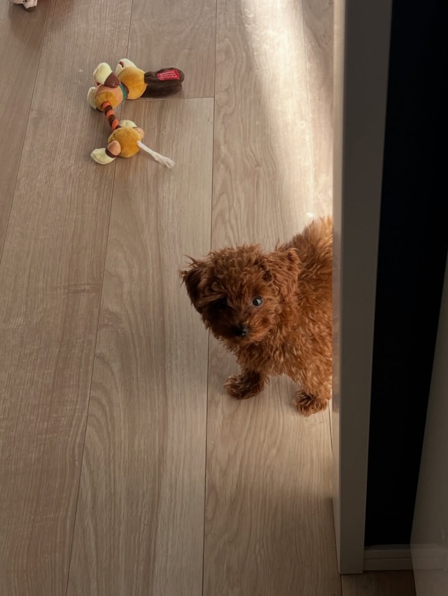 ももかさんの愛犬runaちゃん♡ ワンちゃん関係のものはミッドタウンのGREEN DOG & CATで買うことが多いそう。ちなみにrunaちゃんの食の好みは? 「いろいろ試したけどヤムヤムヤムが一番好きかも? 犬用のふりかけで味変してあげたりしてます。あとはちょいちょいワンちゃん用のスープも作ったりしてます♡」。~ももかの働く一日:夜ごはんから出勤まで~